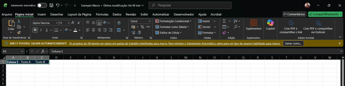 É Preciso ficar atento na hora de salvar o arquivo, pois as Macros utilizam códigos de programação (VBA) que não podem ser salvos em arquivos comuns do Excel (.xlsx).