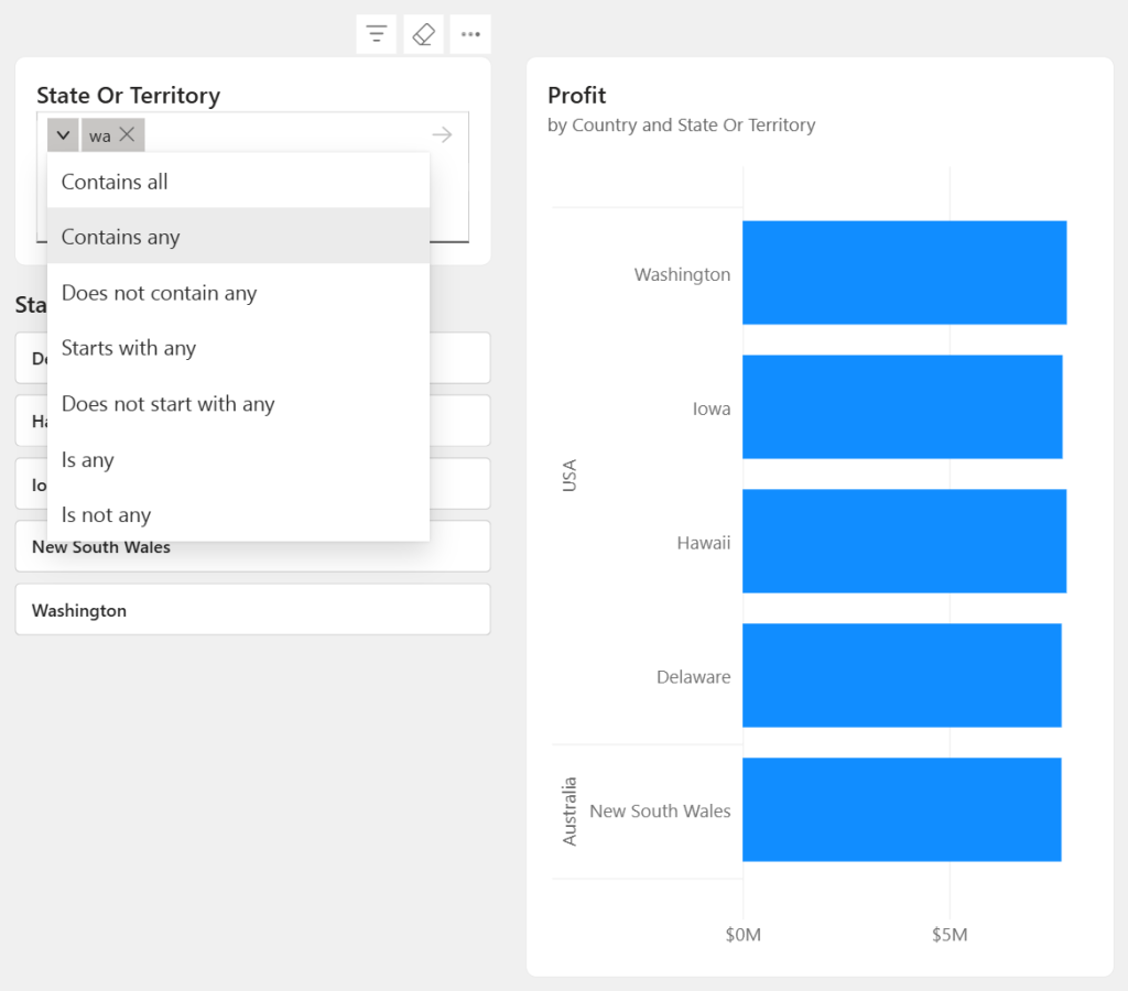 Com a disponibilidade geral, agora você pode escolher mais opções de filtro. Os usuários do relatório podem escolher entre: