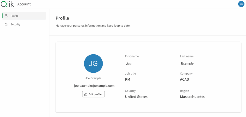 13. Nova página de perfil Qlik Account