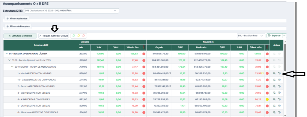 Justificativa de desvios no DRE