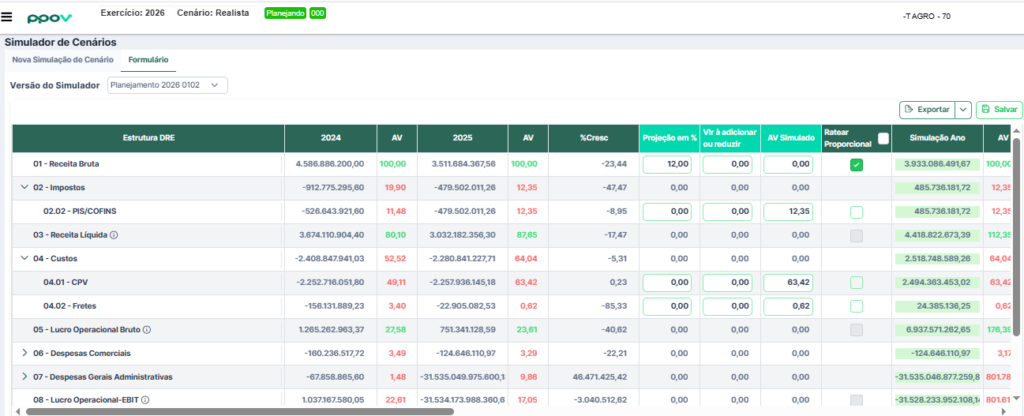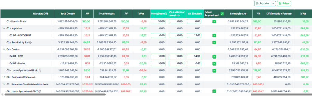 Comparar cenários com projeções diferentes (por exemplo: crescimento de 3%, 7% ou 12%) e ver o resultado simulado de cada um e apresentar à diretoria os trade-offs antes de começar o planejamento.