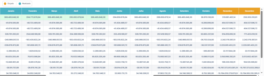 A divisão entre os meses pode ser feita de forma igualitária ou proporcional, levando em conta a importância de cada mês no orçamento que já foi aprovado. O resultado prático é que a controladoria consegue conferir o impacto antes de clicar em confirmar.